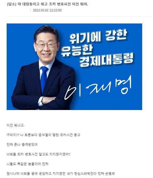 근데 또장동이라 그부분은 나도 피곤하긴 했는데, 거기서 끝났으면 이재명 승인데 조카살인변호 까발린게 컸다고 봄