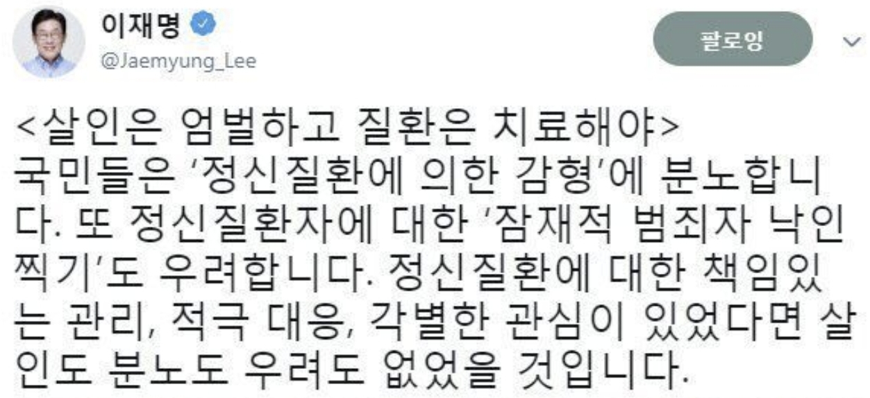 전여친이랑 헤어지고 집에 침입해서 전여친의 두딸을 앞에 묶어서 놔두고 농약마시라고 한 다음에 딸들 앞에선 못하겠다고 전여친이 안마시니 회칼로 수차례 찔러서 살해한 사건도 이재명이 변호. 이거는 15년 나왔는데 역시나 계속 심신미약 주장하며 항소까지 진행.