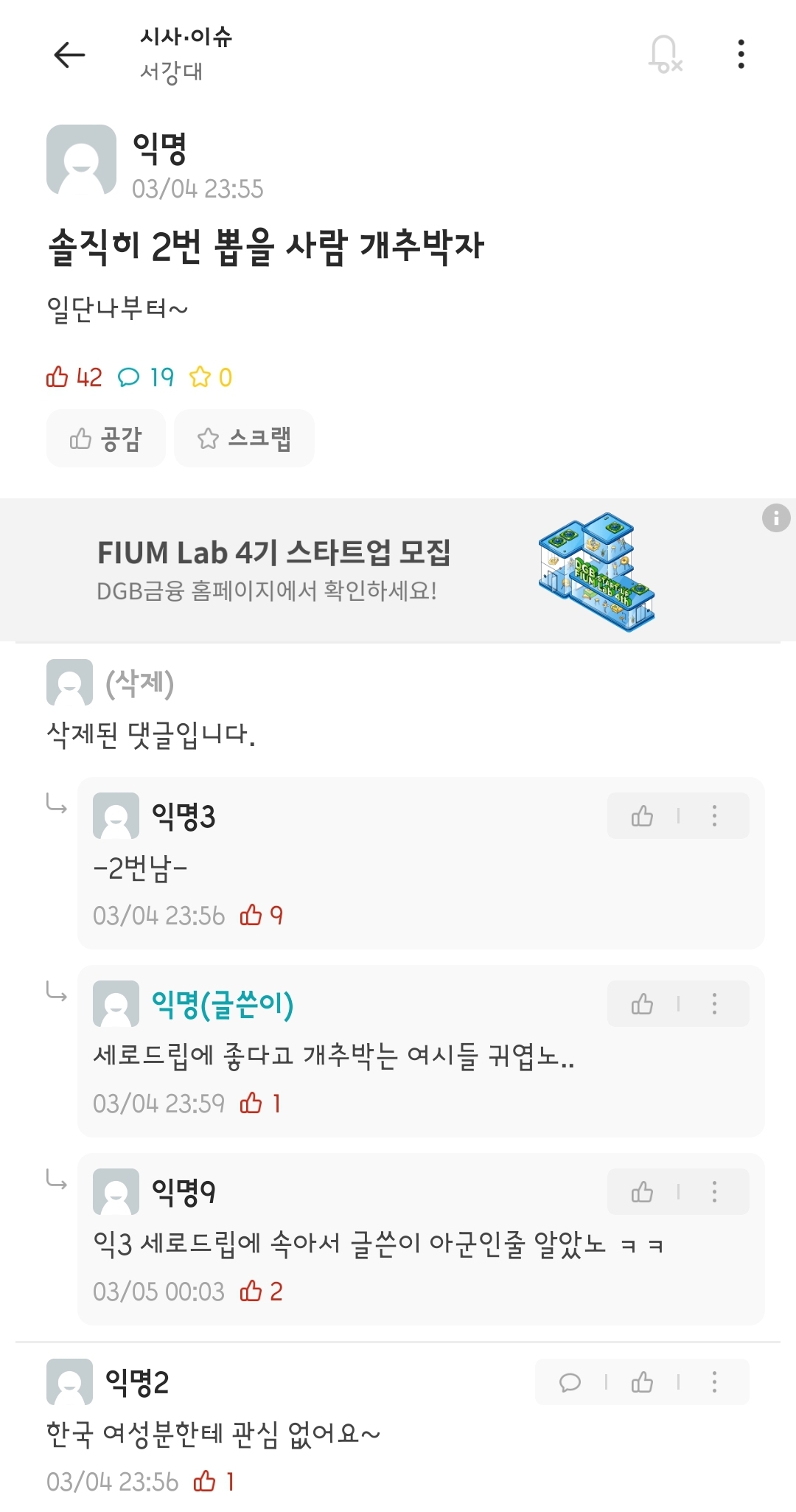 서강대 에브리타임 시사이슈게 역대 최고 좋아요수 달성....