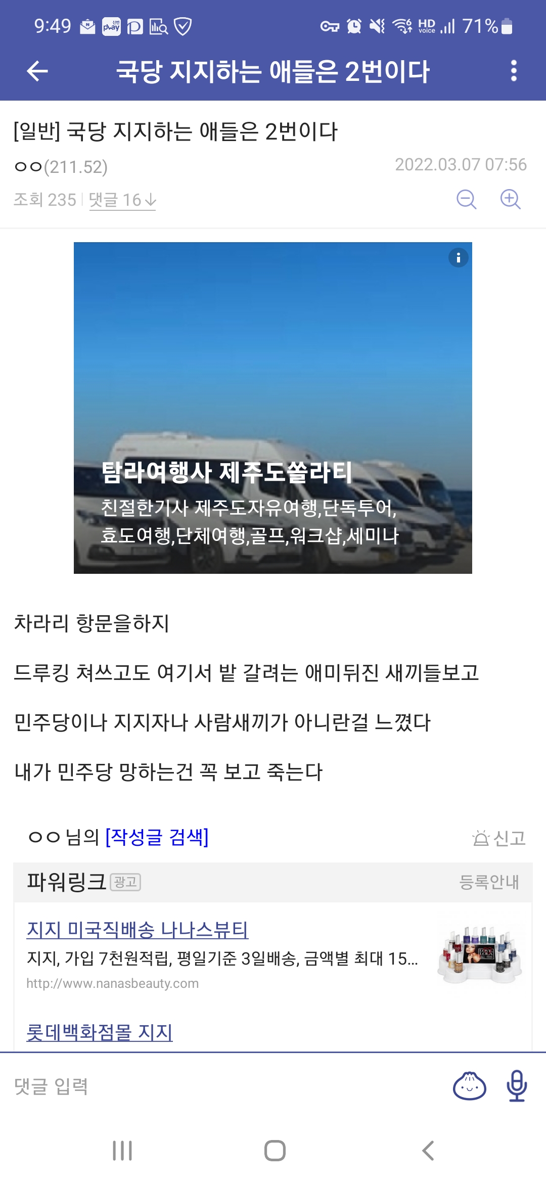 와씨 근데 댓글 작업치고 선동하는 거 진짜 ㅈㄴ 소름이네 이 나라에 미래가 있는 건가