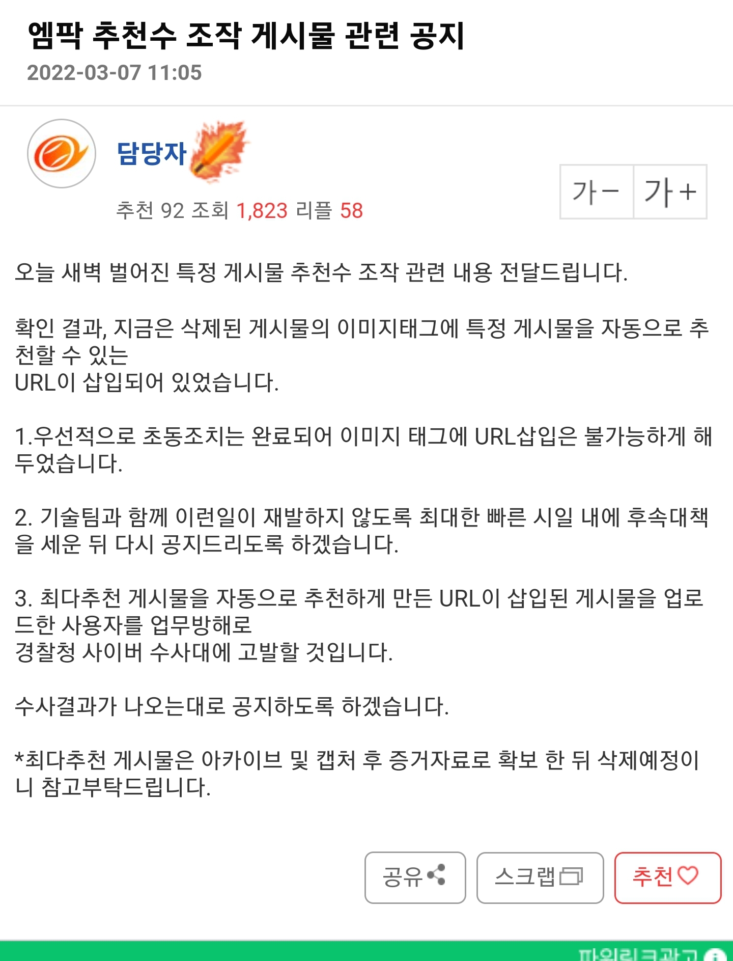 윤석열 대장동 게시글 추천 조작하다 걸림