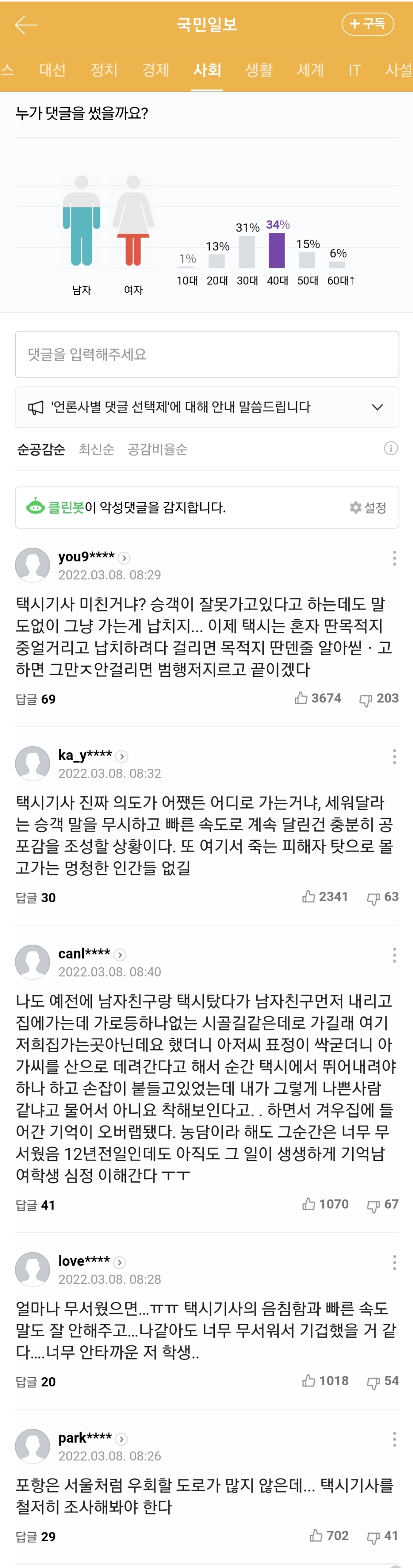 택시 문 열고 자살한 여자 기사 댓글 (스윗 3040)
