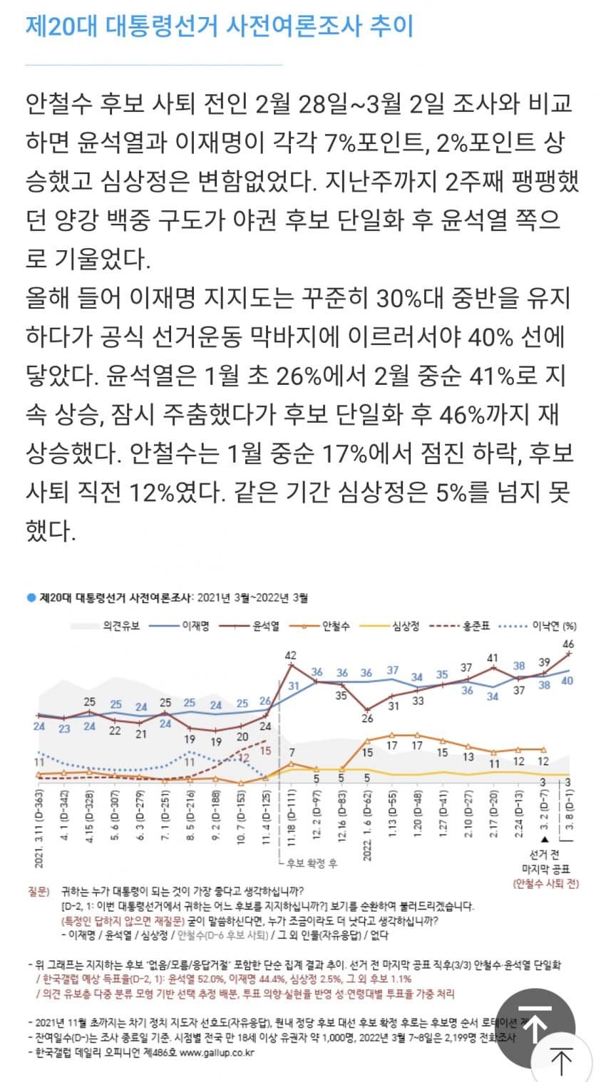 한국 갤럽 최종 여론조사