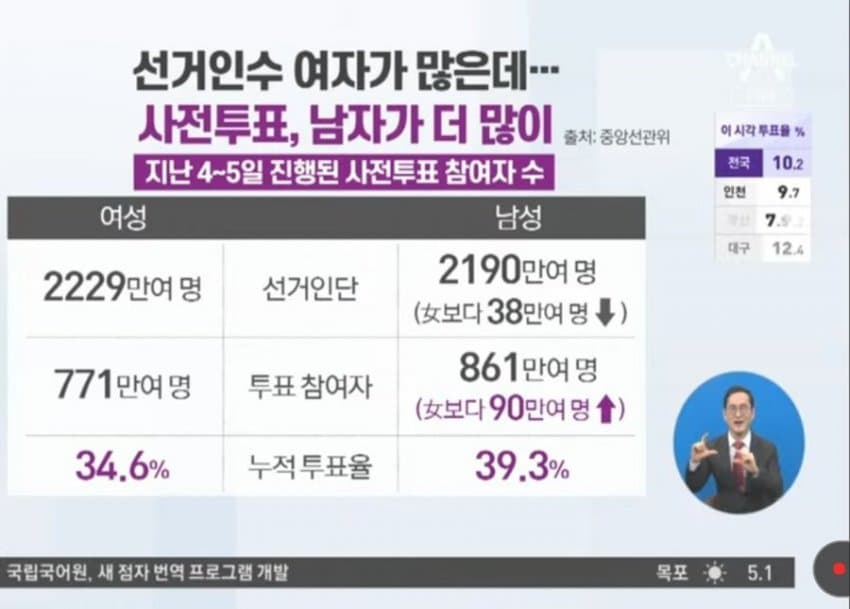 사전 투표에 있어서 남성 유권자가 더 많음