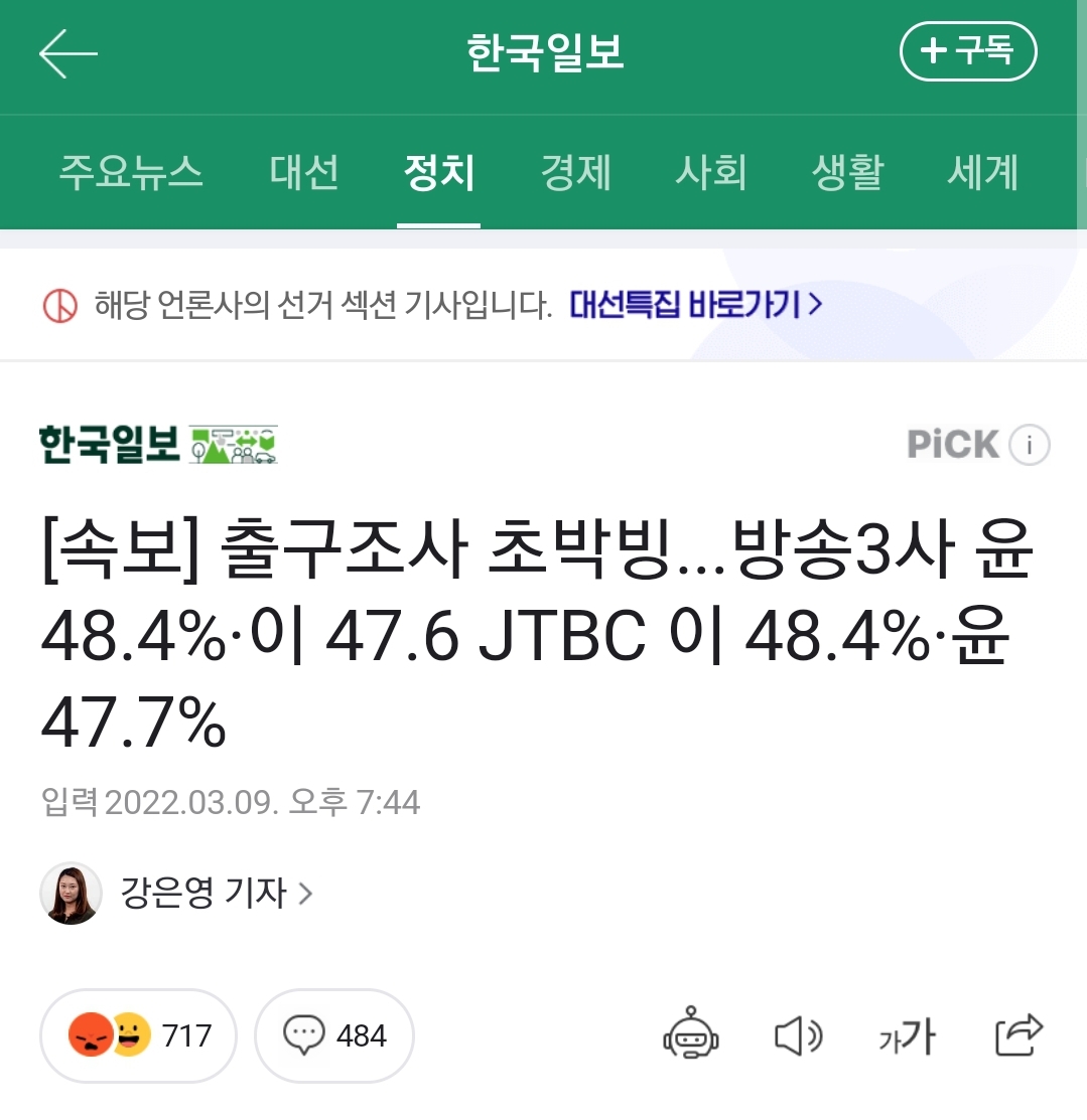 나도 여조랑 이 정도로 차이 나는 게 어이 없긴 한데 결국 이기긴 할 것 같음 ㅇㅇ 방송3사에서 이겼으니
