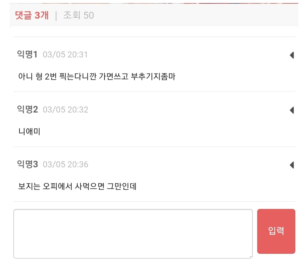 하... 진짜 말이 안 통하네 이렇게 살진 말아야겠다. 쓰니도 미안하다 내가 이상한 애랑 싸운다고 니 글에서 싸워버렸네