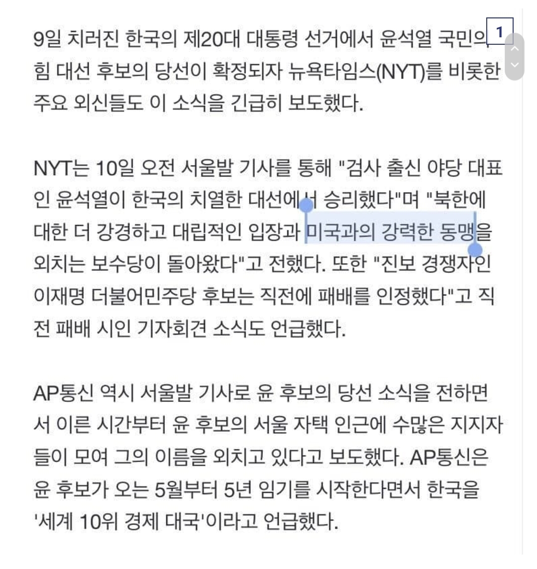 뉴옥타임즈 "미국의 강력한 동맹국이 돌아왔다."