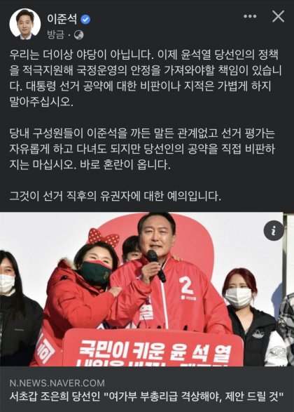 재보궐로 당선된 1일차 국회의원이 1일차 대통령 당선인 공약을 들이받는 건 무슨 짓거리냐