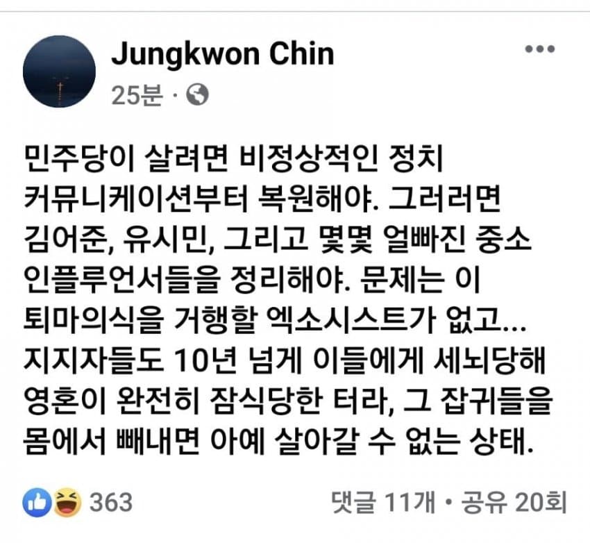 클리앙 얘기하면서 진중권 페북을 왜들고옴?