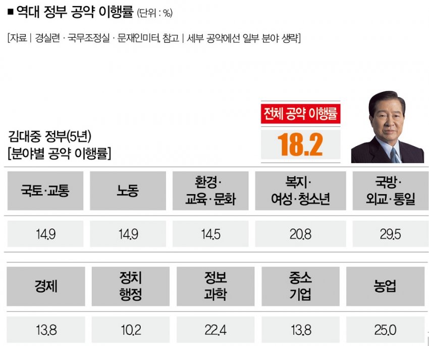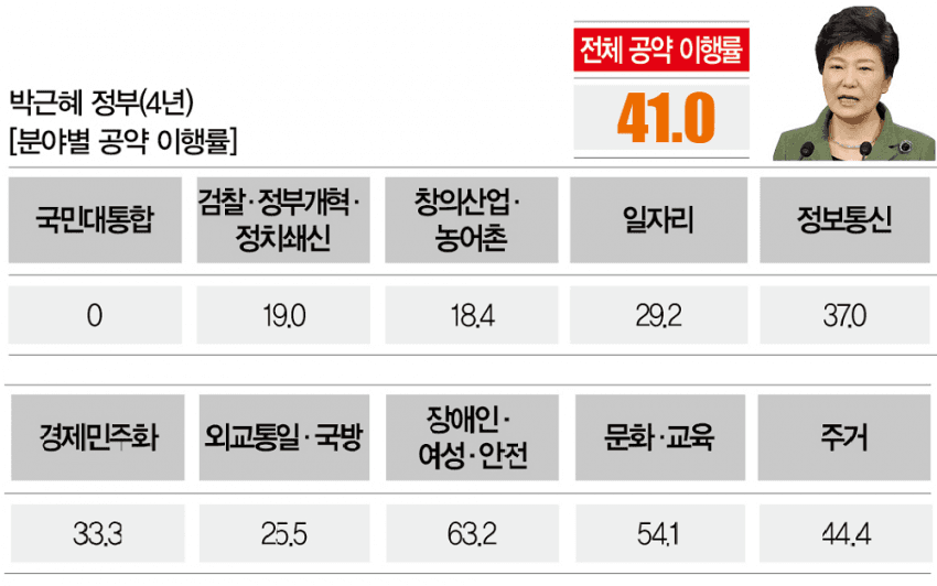 와 근데 박근혜정부는 말그대로 한게 아무것도 없는건데 공약이행률이 저정도면