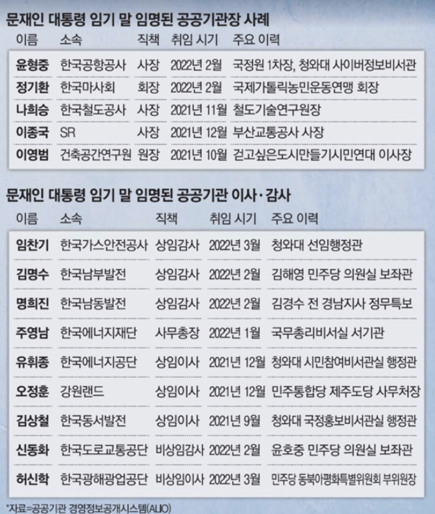 최근에 임기말인데 위처럼 공공기관장+임원 자기사람 자꾸 꽂아대서