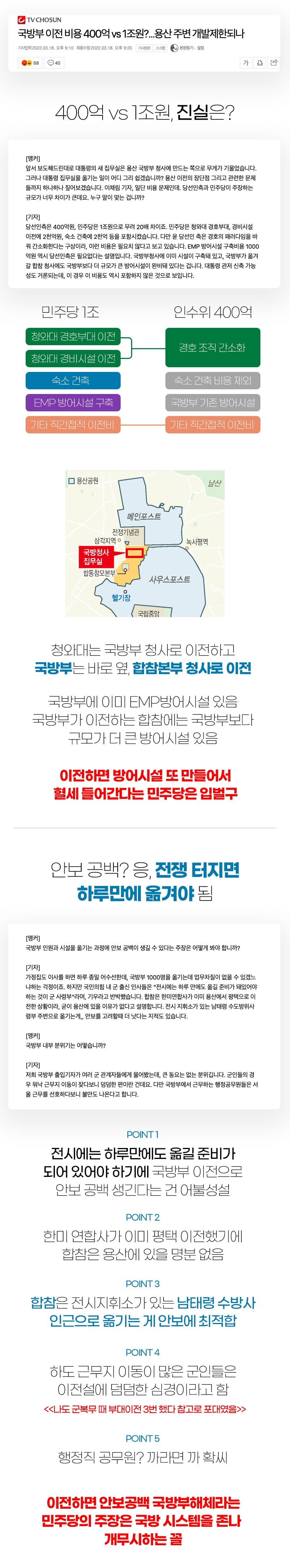 SBS가 확인한 국방부의 구체적인 이전 비용은 국방부 이사 비용 500억 원, 국방 청사를 새로 짓는 데 1~2천억 원, 네트워크망에 1천억 원, 방호시설에 1천억 원 등이 소요될 것으로 예상됐습니다.