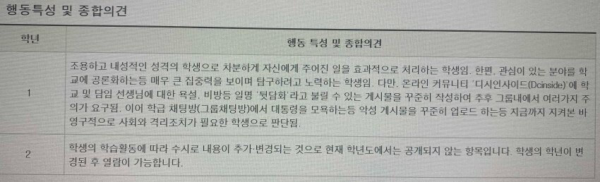 얼마나 난리 챴으면 생기부에 저렇게 적어