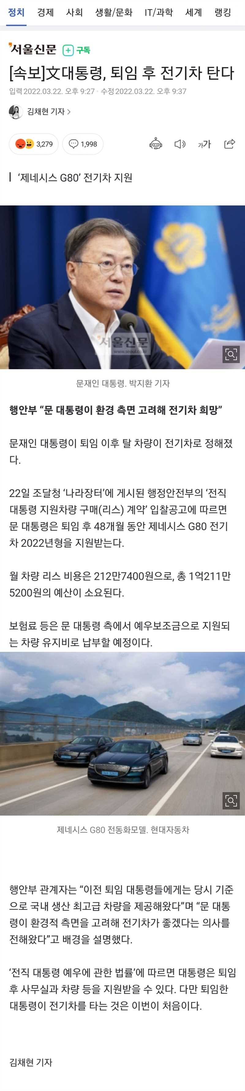 [속보]文대통령, 퇴임 후 전기차 탄다