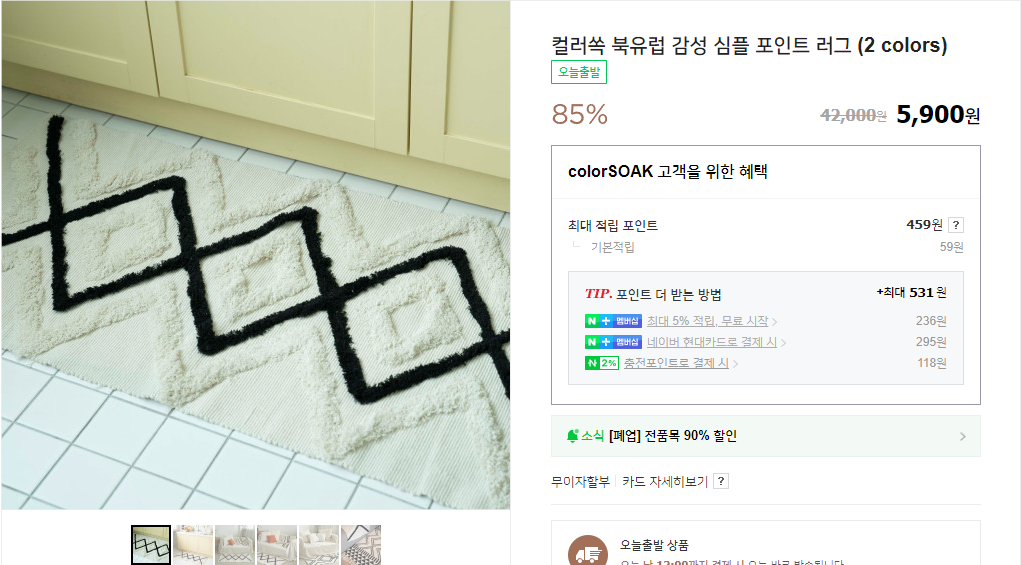 저는 러그, 담요, 실내화 등 다양한 리빙 상품을 판매하는 스마트스토어 'Colorsoak'를 운영하고 있습니다.