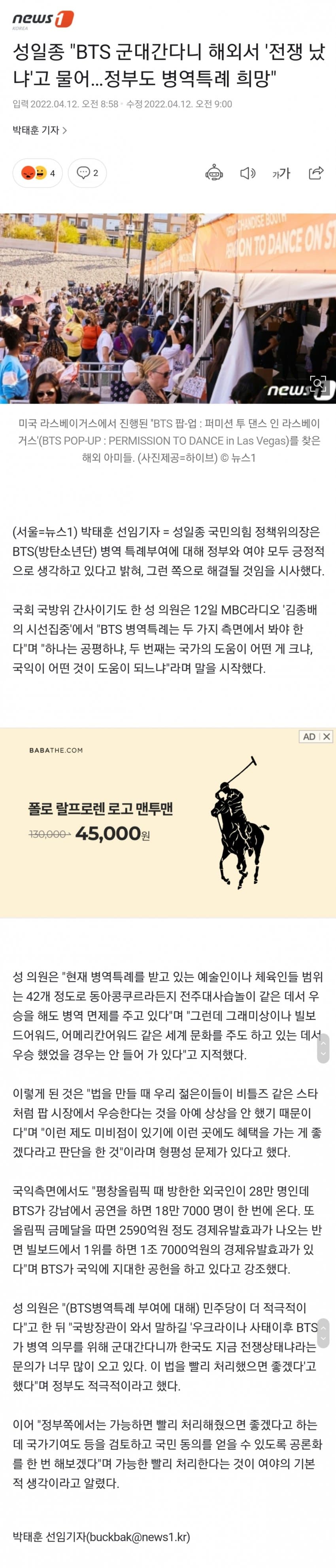성일종 블로그 댓글창 bts 군면제 이슈 때문에 난리던데 그런거에 아랑곳하지 않고 오늘 다시 자기 입장 밝히노...
