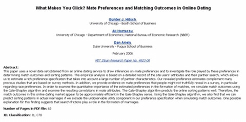 U Chicago, Duke, MIT 에서 낸 경제학 논문에서, 수만명의 커플들을 대상으로 연구한 결과