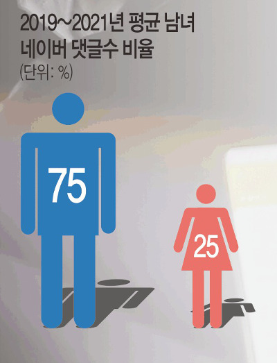 성별로만 보면 댓글은 남성이 여성보다 압도적으로 많이 썼다. 지난 3년간 작성된 댓글 작성자의 남녀 비율은 평균적으로 75대 25로 집계된다. 남성이 작성한 댓글수가 여성보다 3배나 되는 것이다.