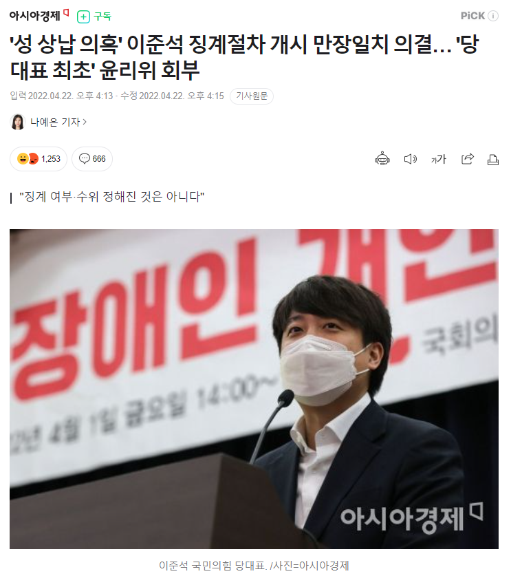 근데 사실인가봄? 바로 징계 때리는거 보니