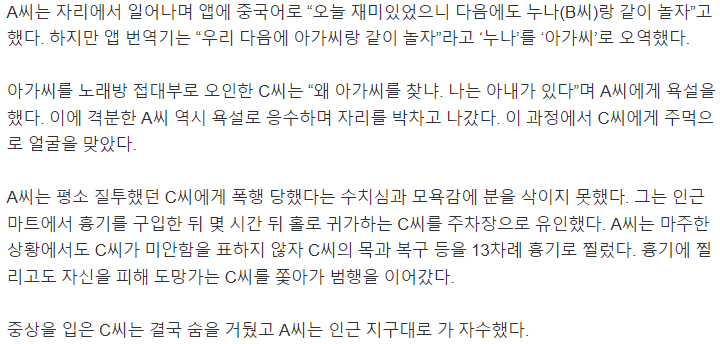 조선족들은 순한 양처럼 자란 한국인들과는 달리 오해로 기분이 나빠지면 일단 칼빵부터 찌르고 봄