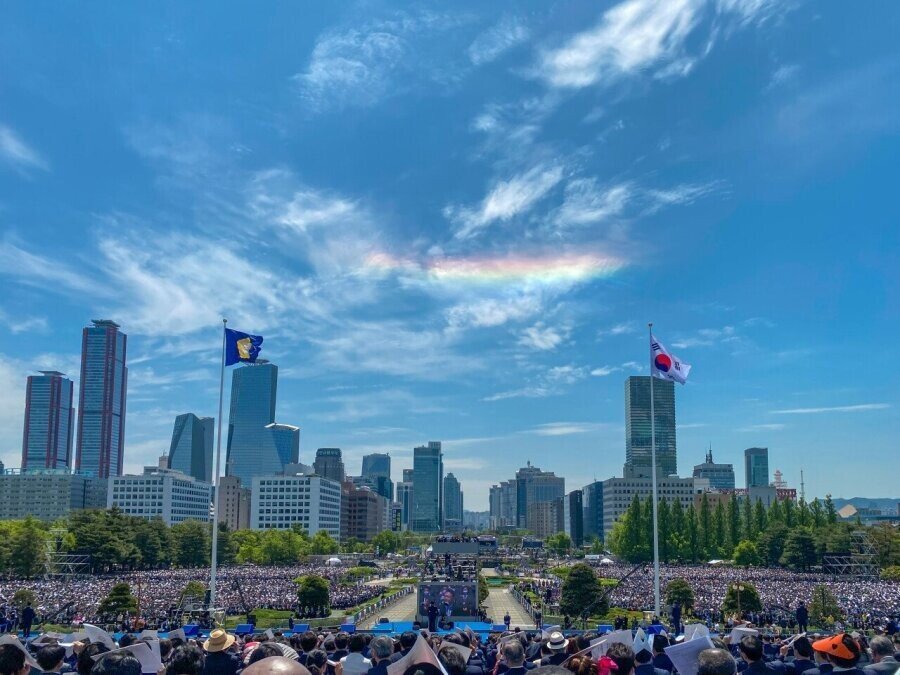 하늘에서 무지개로 반길정도로 윤석열이 좋은 대통령이 된다는 뜻