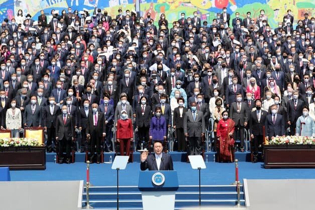 근데 바로 전 대통령도 아니고 탄핵당한 전전대통령을 중앙에 놓을명분이 있나 ㅋㅋㅋ 문재인네는 구석에 박혀있네