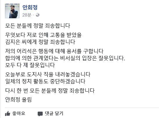 안희정은 사건 직후 페북만 안올렸으면 살았음