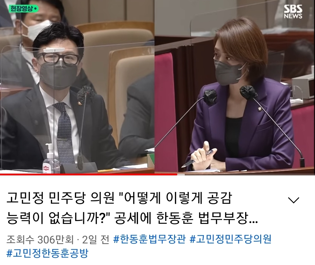 한동훈-고민정 영상 조회수 300만찍었네