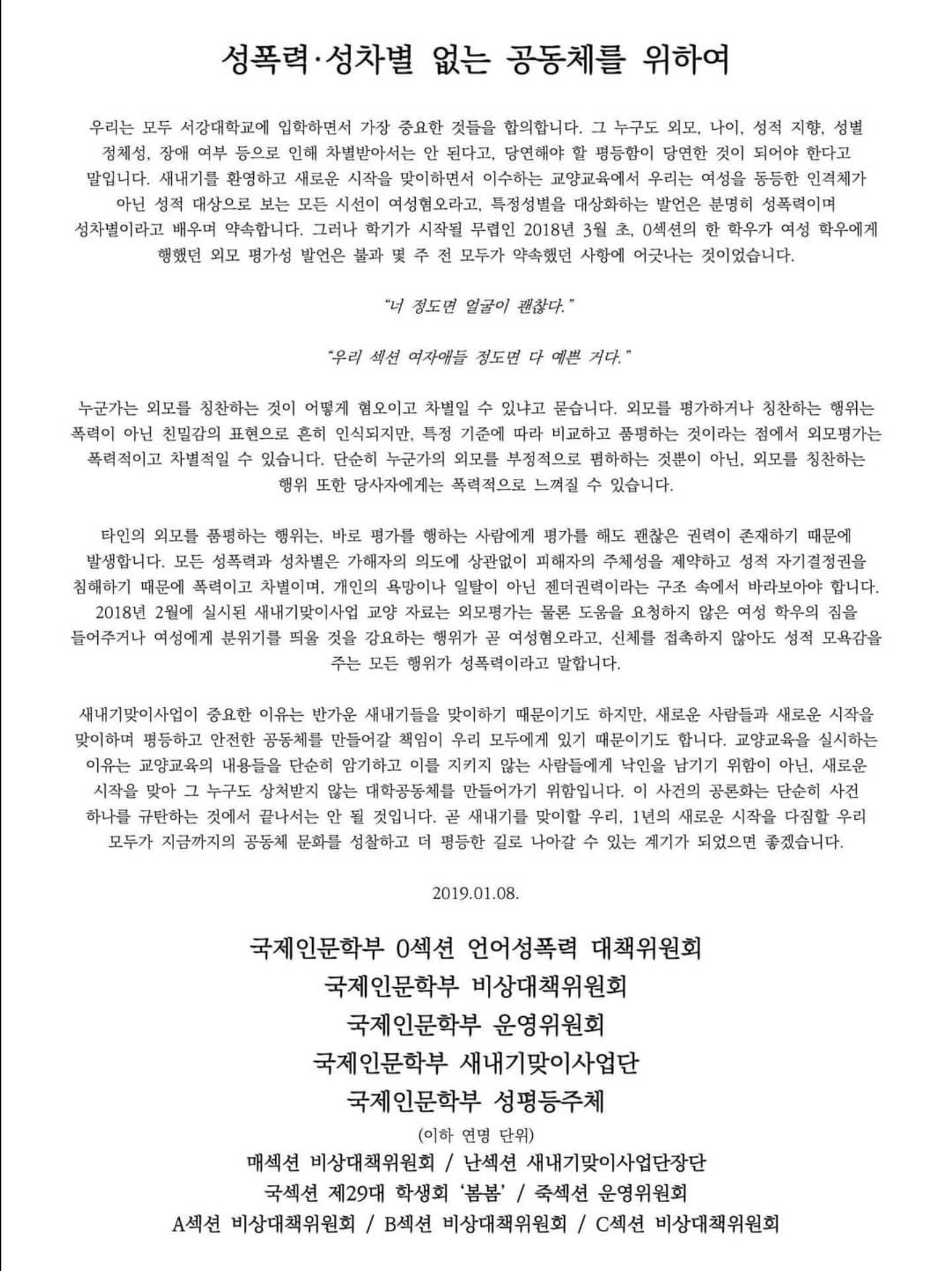 1.해당 사건이 일어난 인문대 " " 섹션은 17년도 단톡에서 여학생이 남성기를 언급하며 남자를 비하한걸로 논란이 됐던 섹션임.