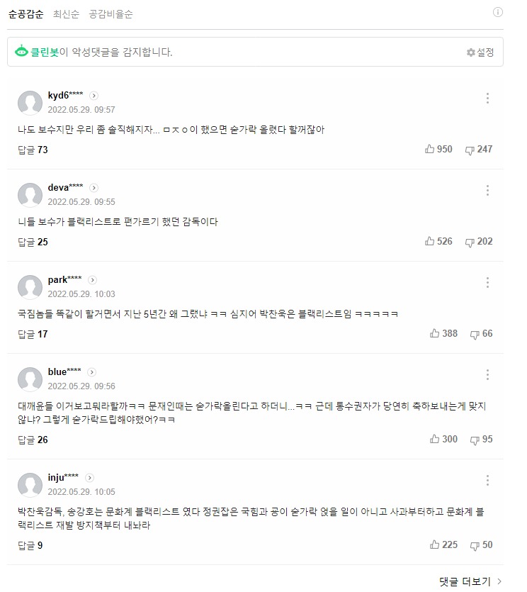 요즘 네이버도 먹힘ㅋㅋㅋ 정권바뀌고 우파들이 댓글잘안써서