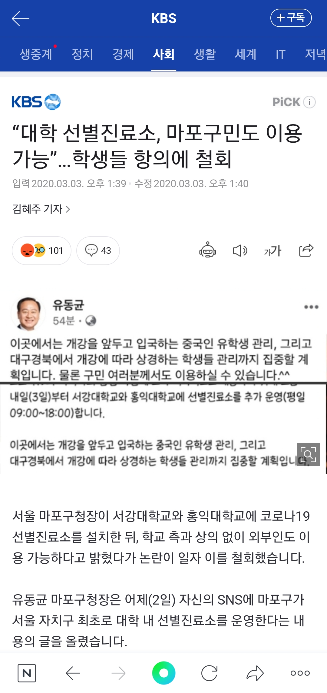 내 말이 ㅋㅋㅋ 마포구청 부지를 쓰든 하다못해 그때 초중고 개학 연기됐었으니(20년 3월) 거기 운동장 부지를 쓰든 해야지 왜 그걸 멀쩡한 사립학교에?