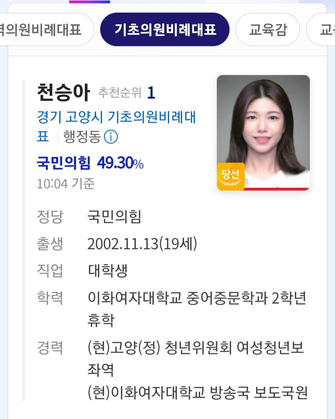 뭐했다고 당선됨? 부모 잘만났나보네