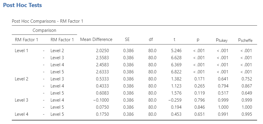그림 03은 ANOVA 분석 결과이며 그림 04는 사후분석 결과이다. Level 1이 16년이고, Level 2가 17년, Level 3가 18년과 같은 식으로 입력되어 있다. 사후분석 결과를 보면 16년(Level 1)을 제외한 나머지 연도는 차이가 없는 것을 확인할 수 있다. 즉, 안전운임제가 도입된 20년도와 나머지 다른 연도 간에는 차이가 없다. 이는 안전운임제 도입이 사고 발생을 줄이는 것에 기여했다는 노조의 주장이 거짓임을 보여주는 결과라고 할 수 있다.