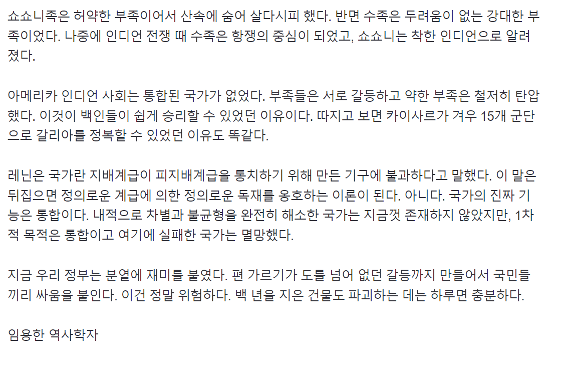 얼마나 갈라치기하면서 행패를 부렸으면 한국 정치 얘기는 거의 안하는 이분이 ㅋㅋ