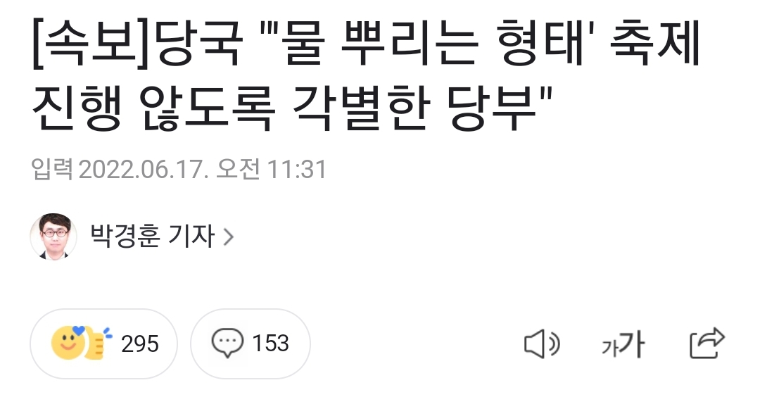 [속보]당국 "'물 뿌리는 형태' 축제 진행 않도록 각별한 당부"