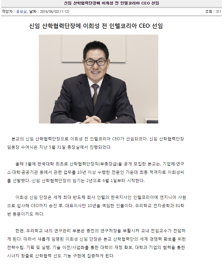 인텔 코리아 ceo가 맡다니... 엄청나네요