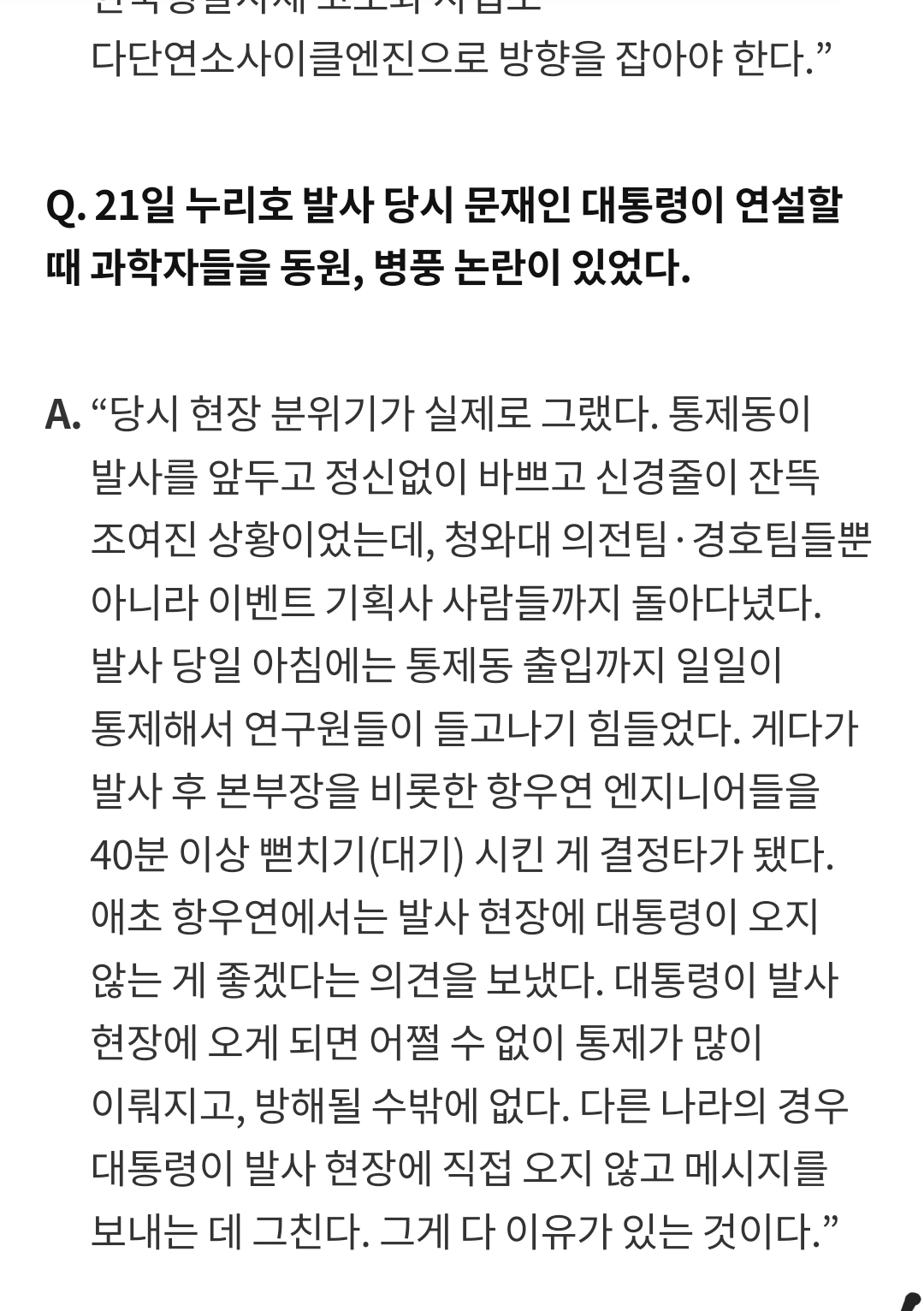 또 조광래 전 항우연장이 작년 누리호 1차때 밝힌 '대통령은 좀 숟가락얹으려 오지 말고 꺼졌으면' 인터뷰ㅋㅋㅋㅋㅋ