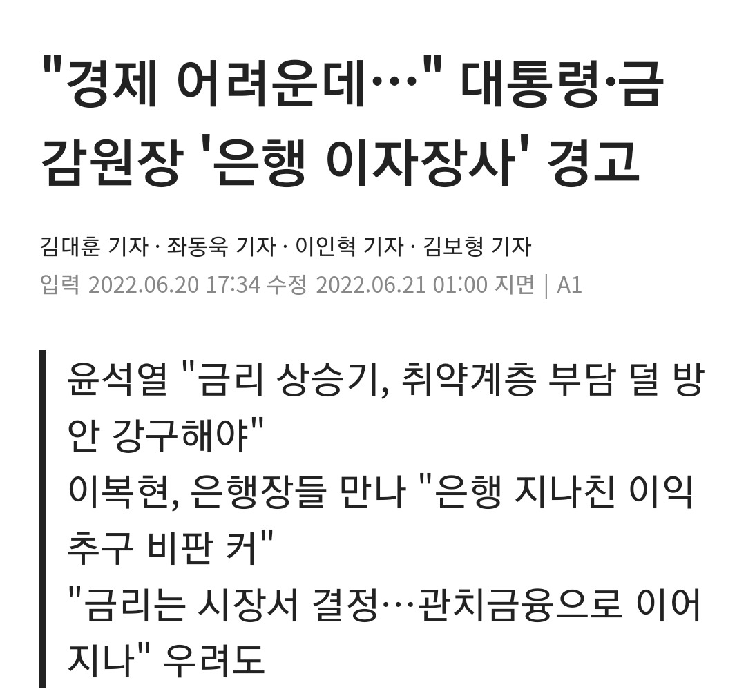 자본주의에서 은행 이자장사가 뭐가 문제인지 모르겠는데 어쨌든 정부에서 "경고"했다고 함