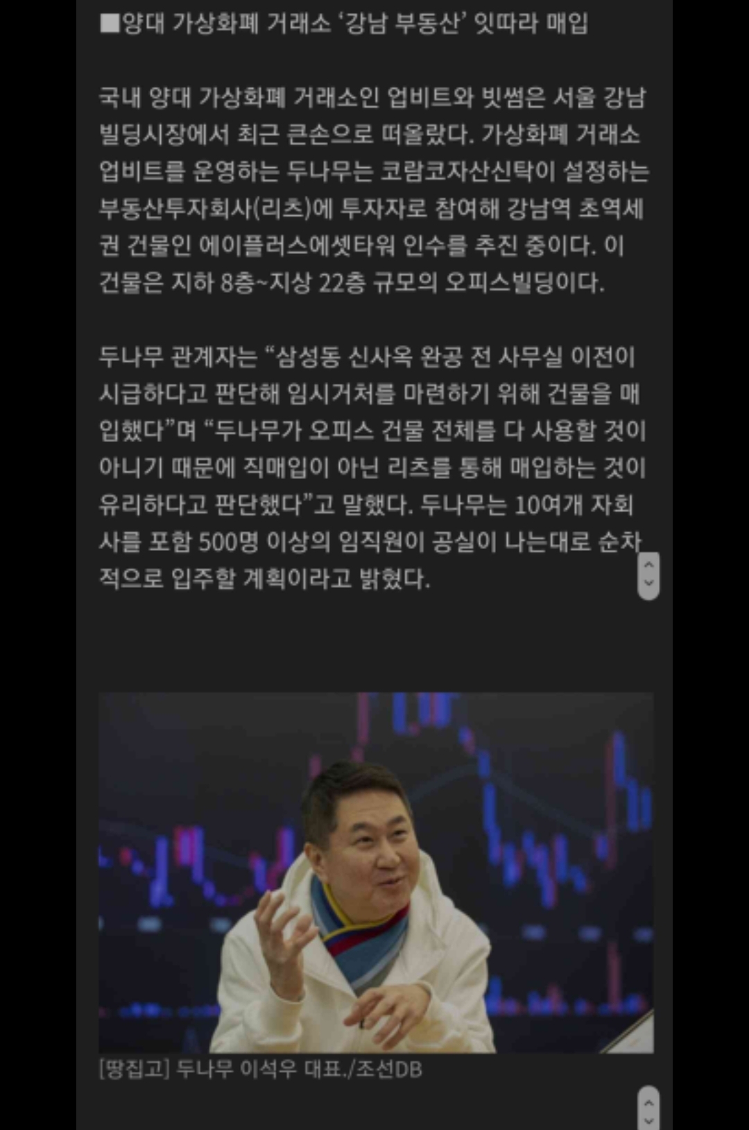 반면에 돈 쓸어담은 코인 거래소는 윤석열의 명령에 응답하여 강남 부동산 쓸어담는 중 ㅇㅇ