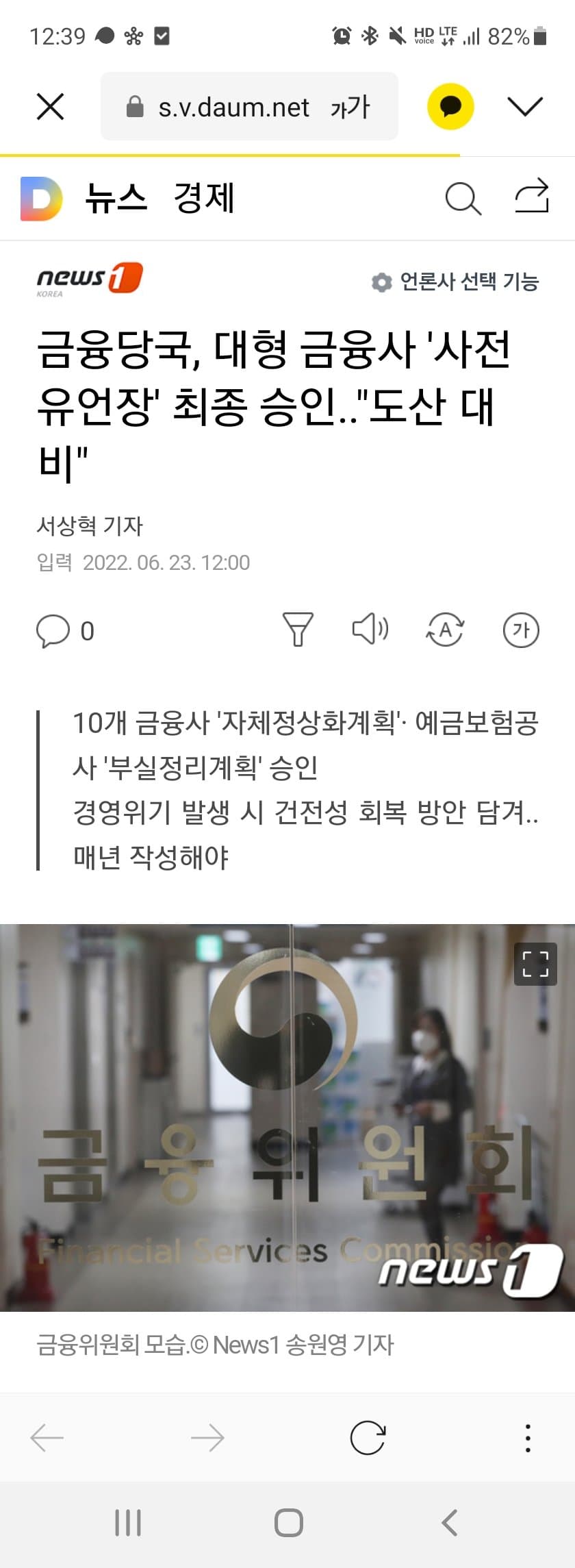 금융당국이 10개 금융사들에게 경제 위기 발생 시에 어떻게 도산에 대비할건지 "매년" 보고서 작성해라고 함 ㄷㄷㄷ