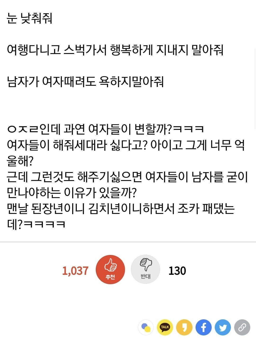 걍 사는게 ㅈ같으니까 페미라고 하는 것 뿐임