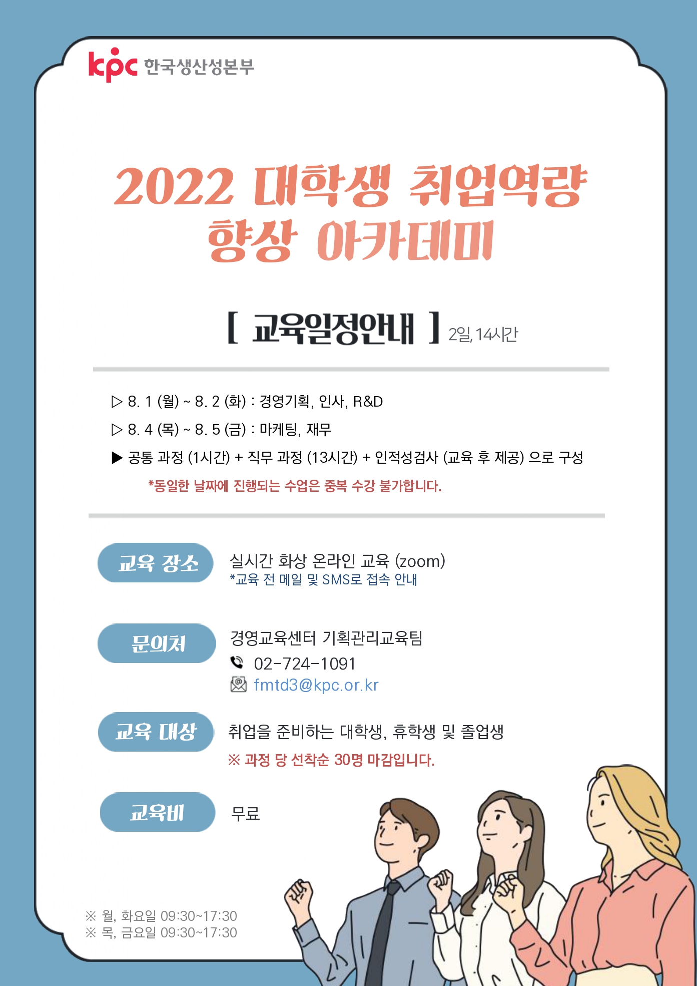 제가 인턴으로 근무 중인 회사에서 대학생 대상으로 취업 관련 무료 교육을 진행하여 홍보를 위해 글을 쓰게 되었습니다.