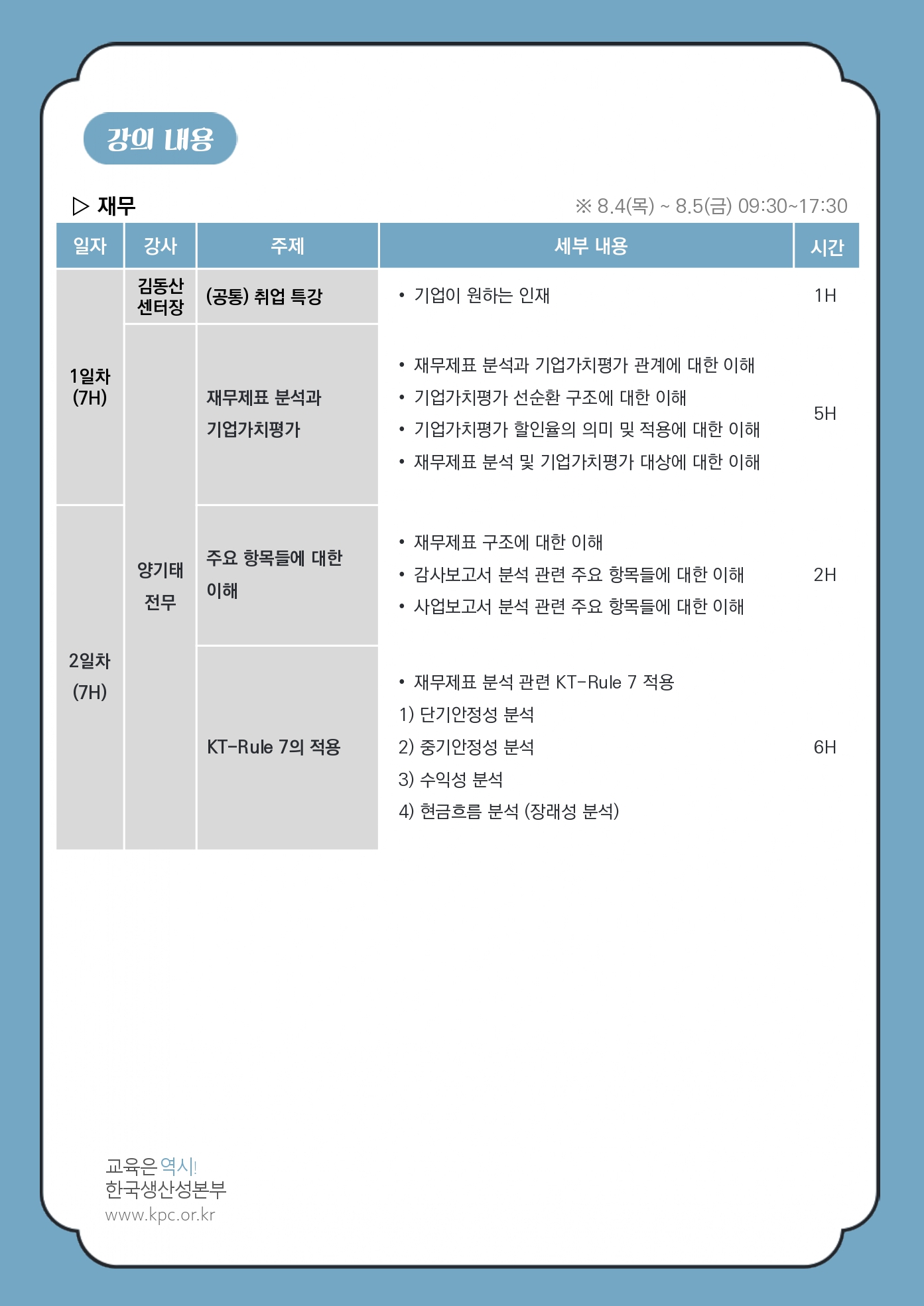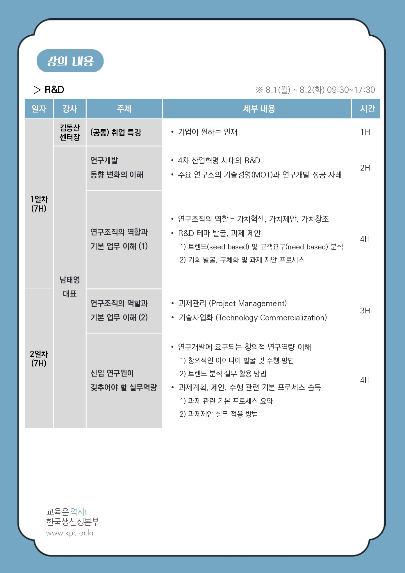 강사님들은 모두 생산성본부에 출강 중인 분들이시며 대학생 아카데미를 위해 따로 열심히 준비까지 하셔서 기대하셔도 좋을 것 같습니다!