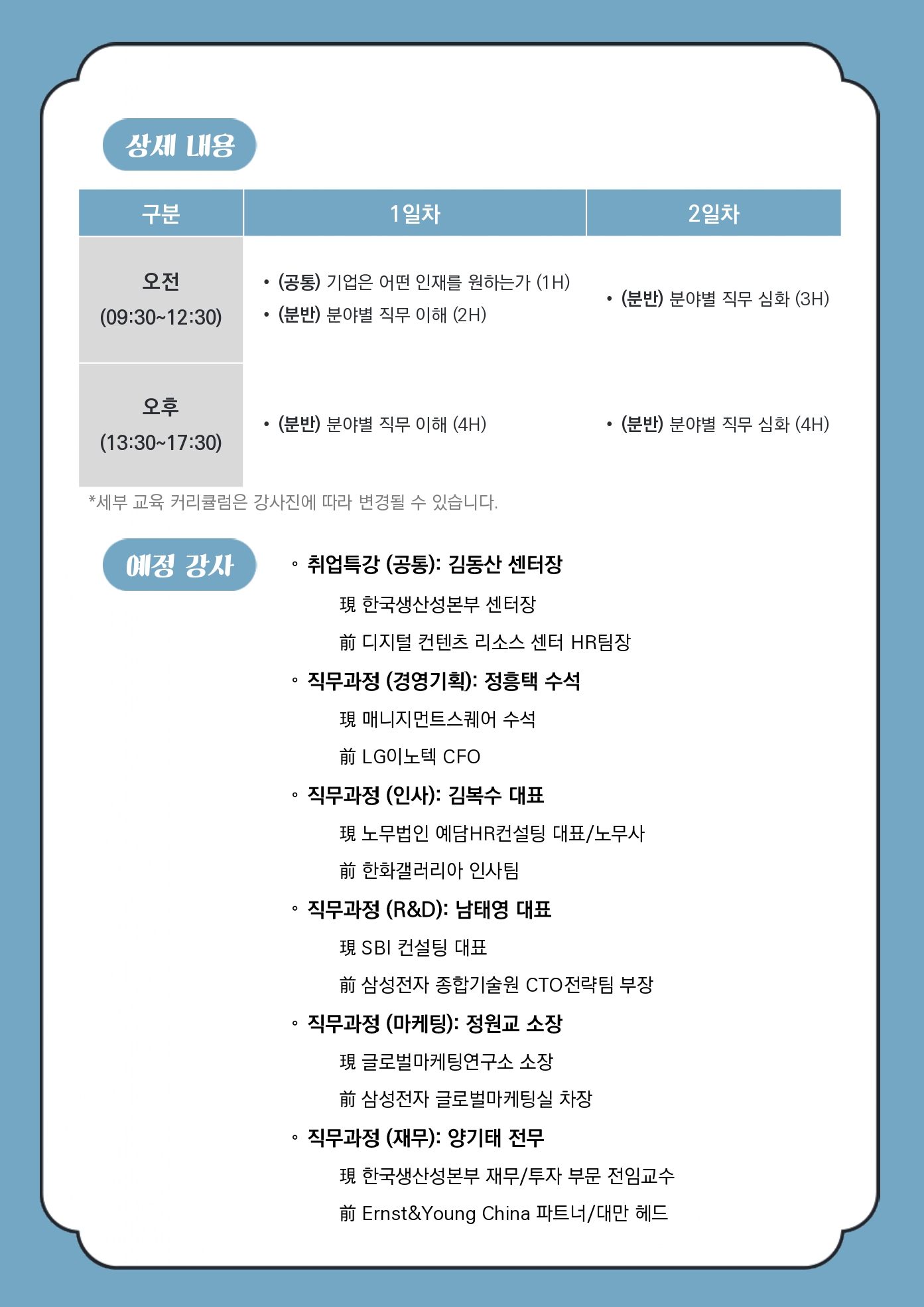 교육대상 : 취업을 준비하는 4학년 이상 대학생, 휴학생 및 졸업생