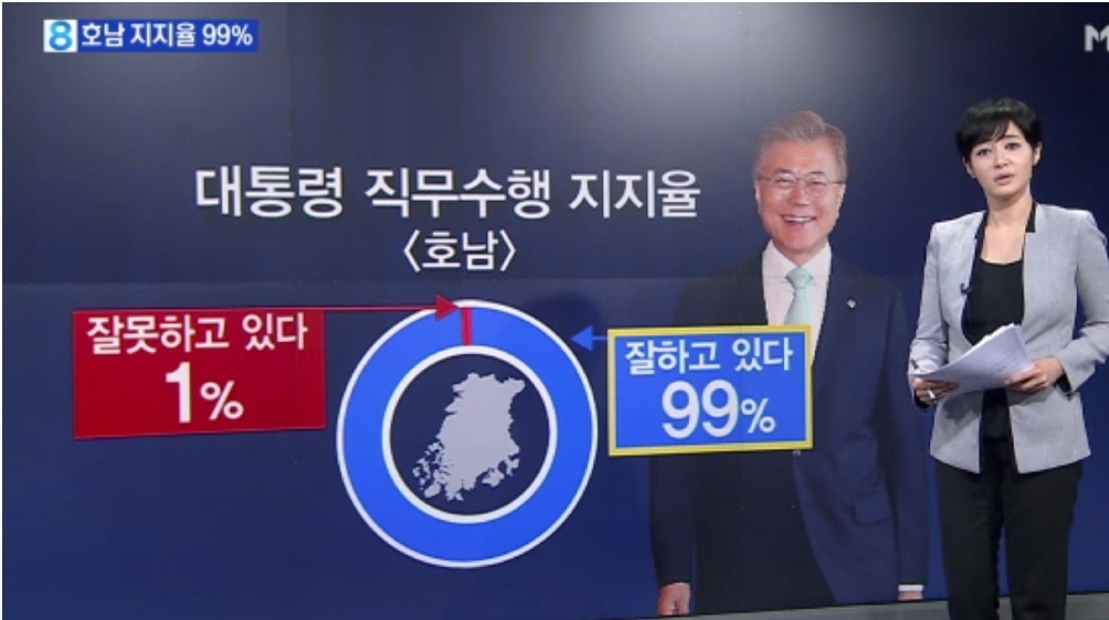 박근혜 말기, 문재인 초기 시절 호남 지지율