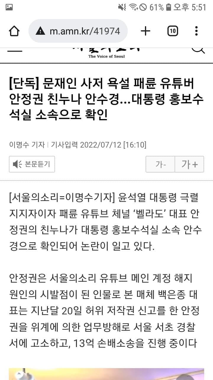 그러니까... 양산에서 쌍욕하고 패드립치면서 시위하는 보수 유튜버의 친누나가 대통령 홍보수석실 직원이라는 소리노...?