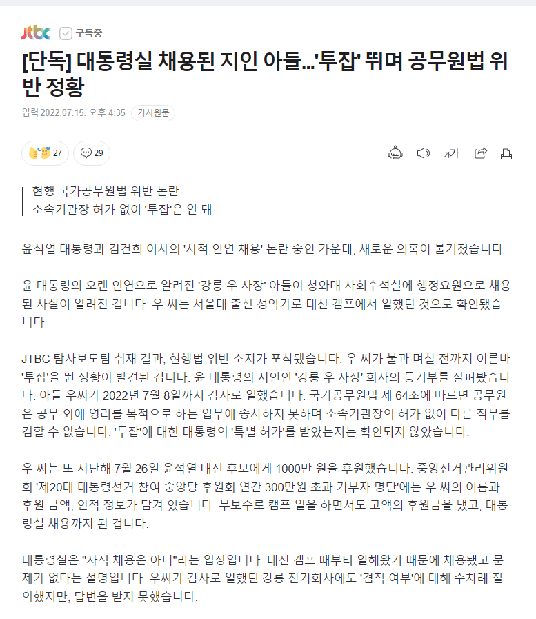 밑밑글에서 나온 대통령실 지인 아들, 공무원법 위반 정황ㅋㅋㅋㅋㅋㅋㅋ