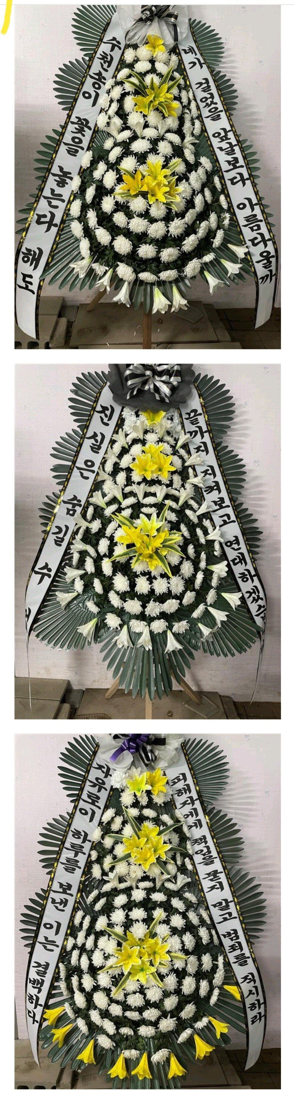 장례식장 안가봄? 괜히 근조나 고인의 명복 빈다고만 써놓는줄 아나 감성글귀에 애도와는 상관없는 결백, 진실 같은 단어 도배해서 136개씩 처보내면서 화력시위하는데 저게 정상임?