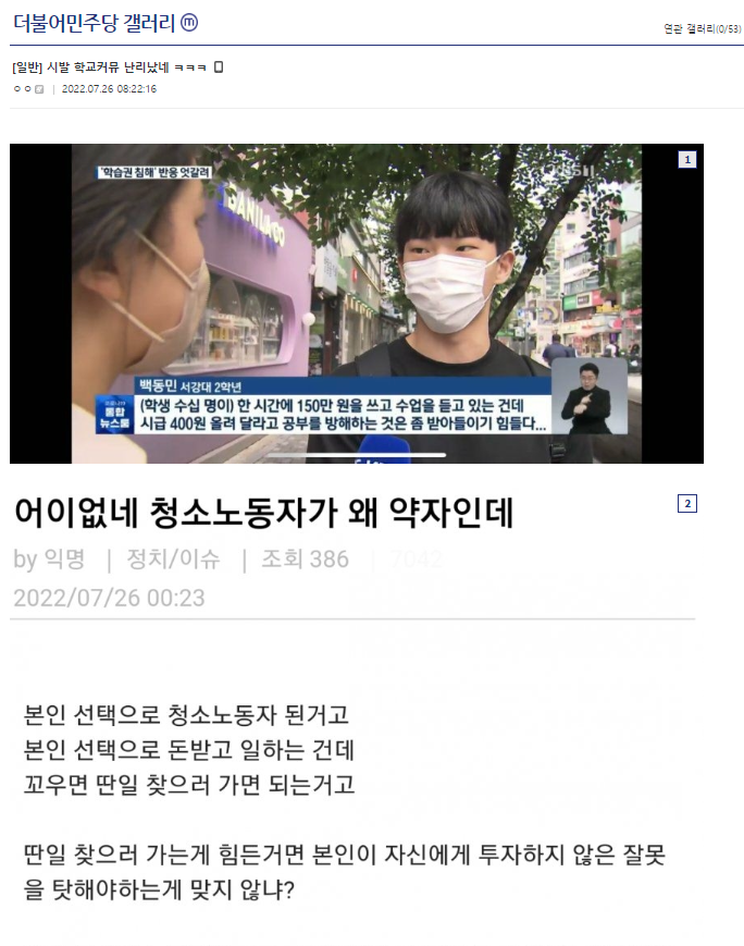 더불어 민주당갤러리에 내글에 댓글달린거 보니깐 진짜 웃기다.