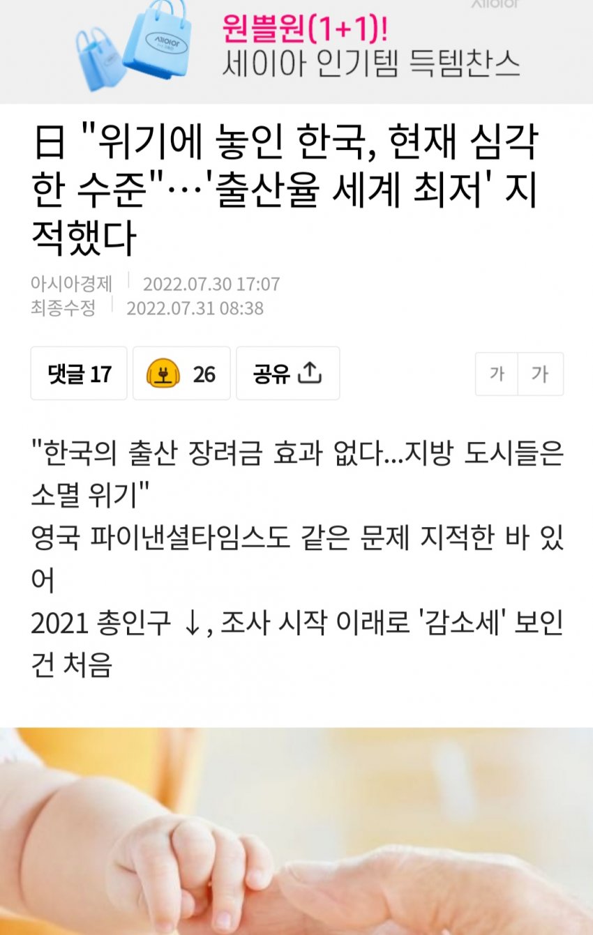 한국 저출산은 한남들이 성평등 의식이 부족하기 때문^^